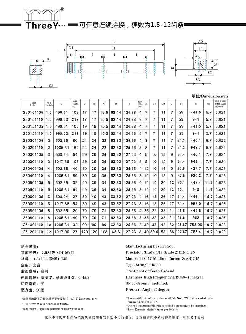 研磨直齒齒條,機(jī)械手齒條,機(jī)器人齒條,精杰YYY齒條,精密ThreeY.SAY齒條,臺灣齒條 研磨齒條 YYC齒條 進(jìn)口齒條 斜齒齒條 直齒齒條 精密齒條 機(jī)械手齒條 機(jī)器人齒條 高精度齒條 瑞士齒條 日本齒條 德國齒條